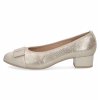 Luxusní dámské lodičky se vyznačují lakovanou špičkou, ozdobnou mašlí na špici a svrškem s hadinkou a metalickým leskem. Svršek je navíc i mírně pružný a chodidlu se lépe přizpůsobí. Uvnitř najdete pohodlnou koženou stélku se vzduchovými polštářky Caprice Insole, pohodlný je také nízký podpatek. Můžete je využít i pro slavnostní příležitosti.