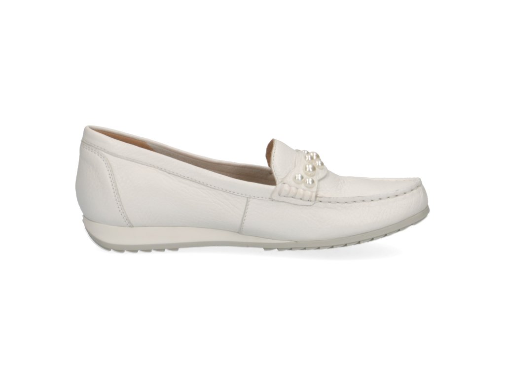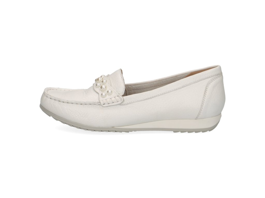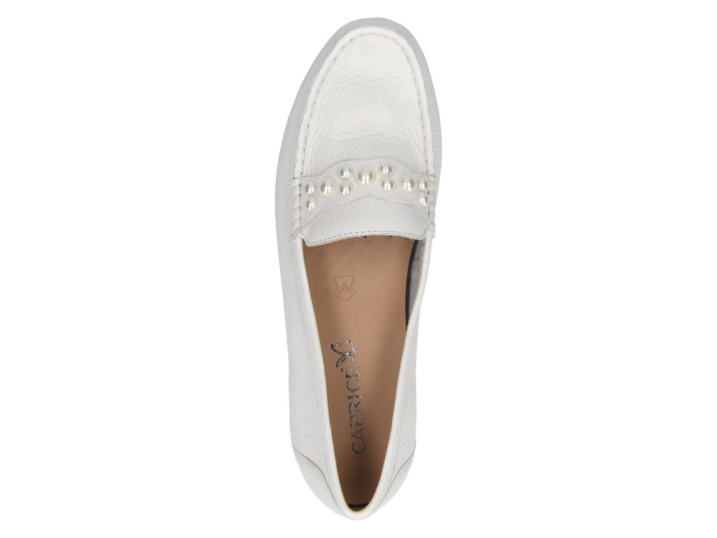 Stylové bílé mokasíny mají svršek z kvalitní jemné jelení kůže a pozornost upoutá pásek na nártu zdobený výraznými perličkami, které jsou horkým trendem sezóny. Stélka vyniká svou prodyšnou a pohodlnou koženou stélkou v provedení on Air Insole. Také patentovaná podešev Caprice Blue Oxygen zajišťuje cirkulaci vzduchu a odvod vlhkosti.