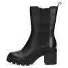 Dámské polokozačky Caprice jsou v černém odstínu, který zkombinujete s jakýmkoliv outfitem. Jsou v originálním designu na vyšší podešvi s pružnou textilní vsadkou na vnější straně. Na vnitřní straně je funkční zip pro snadné obutí. Uvnitř mají příjemně hřejivou podšívku s nízkým vlasem i na stélce se vzduchovými polštářky, které tlumí došlap a zlepšují prostření chodidla. Kozačky mají středně vysoký široký podpatek, proto v nich bude chůze stabilní.