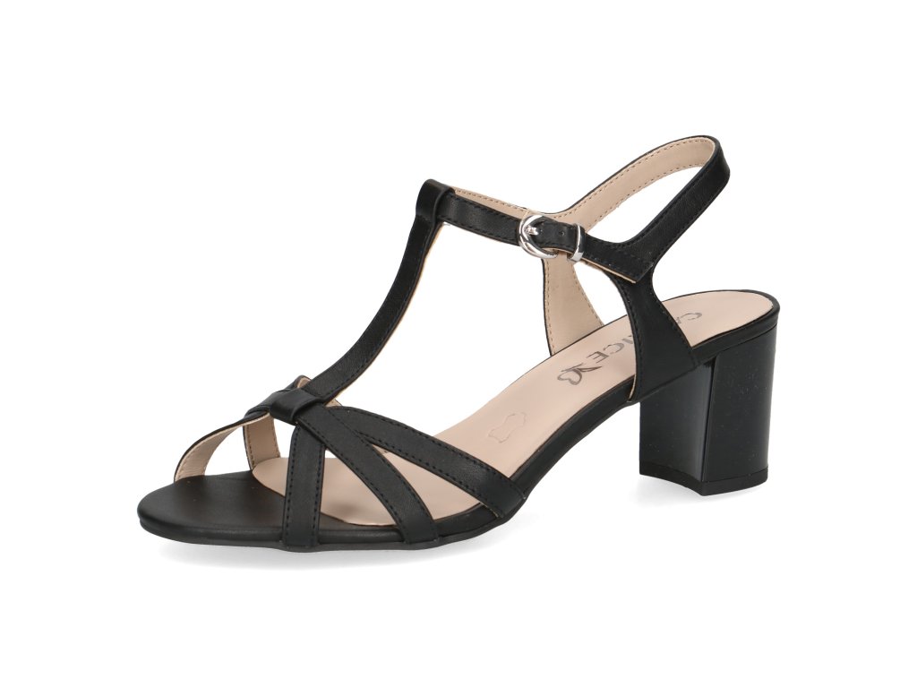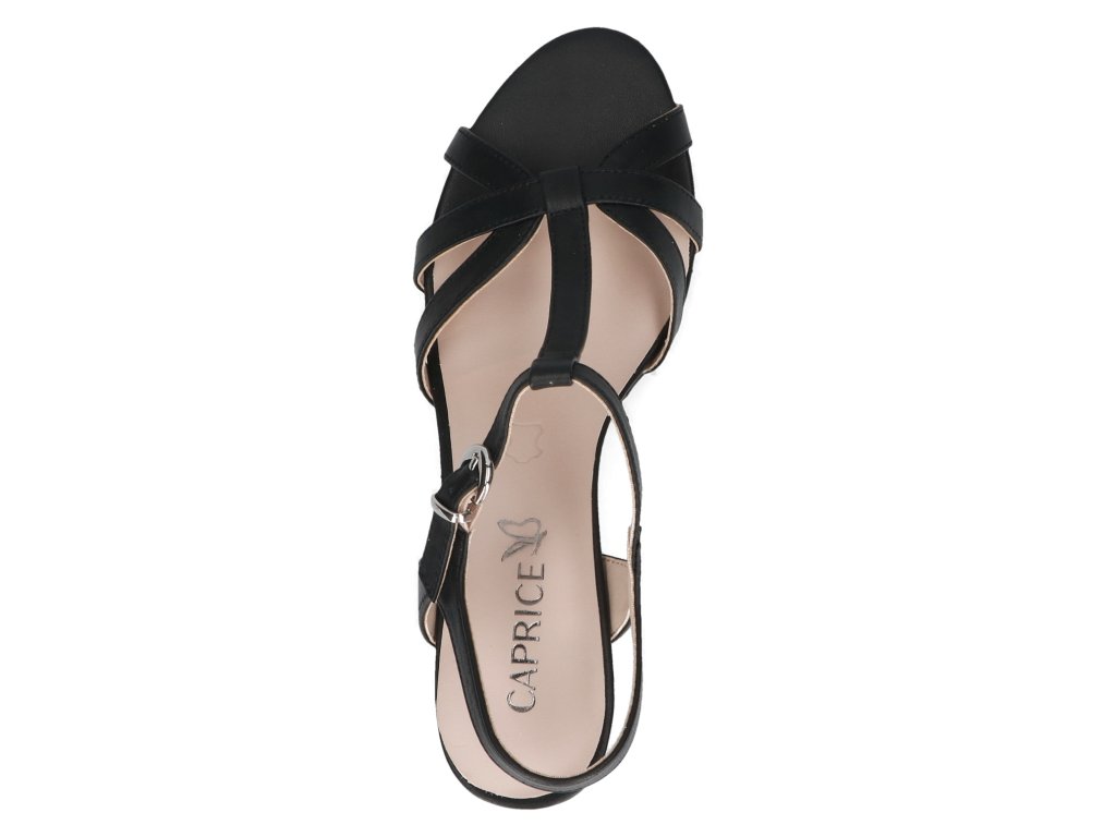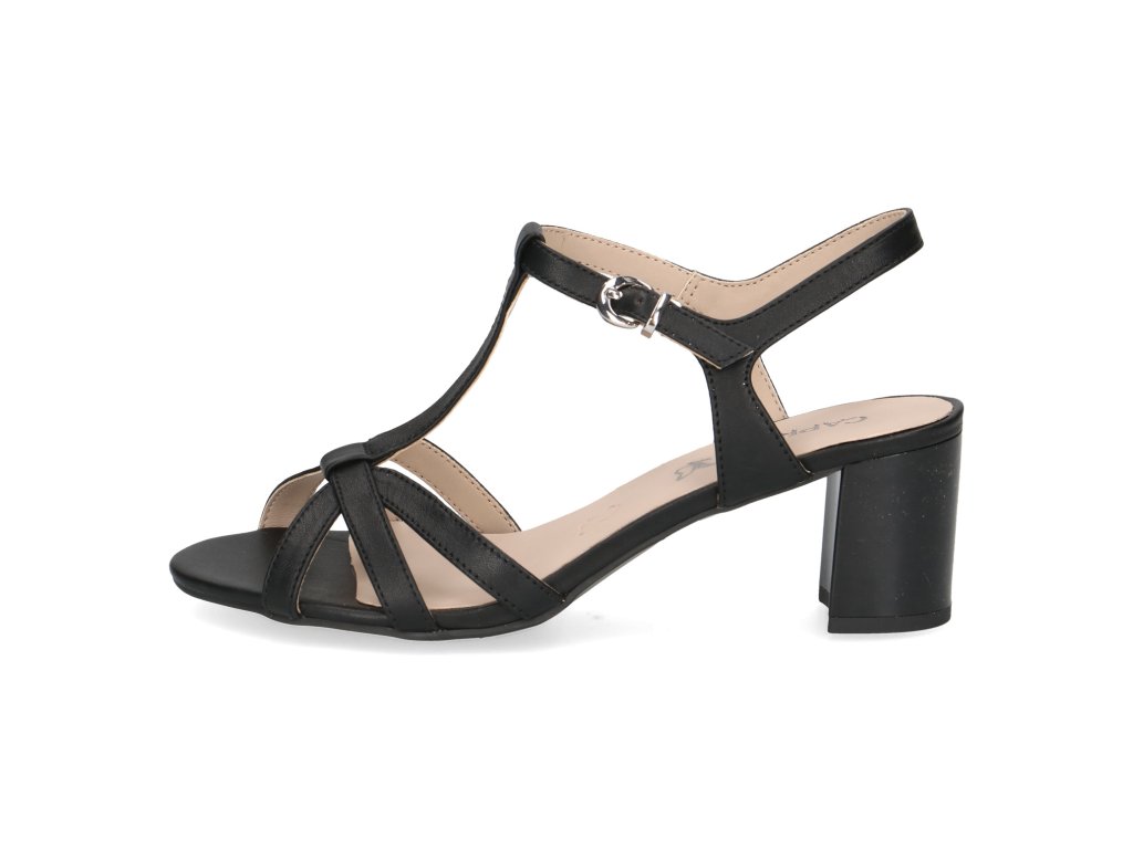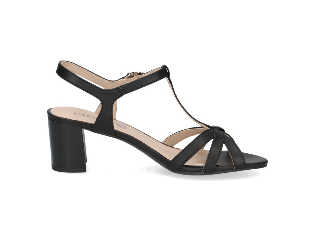 Sandály Caprice jsou v provedení z pásků v černém odstínu, který vždy zkombinujete. Svršek vypadá na nohou zajímavě i díky pásku kolem kotníku, zapínání je pomocí kovové spony. Výhodou je středně vysoký, široký podpatek, který poskytne stabilitu. Tyto sandály jsou vhodné jak na horké léto tak i na společenské události.