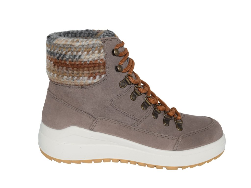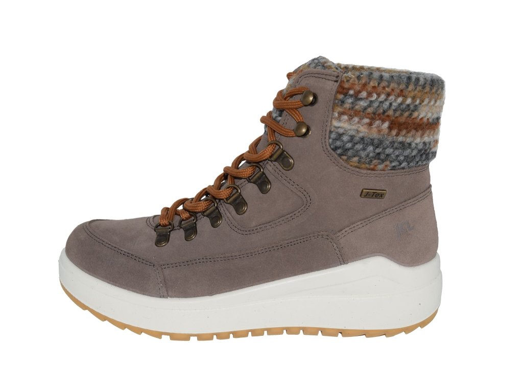 Zimní obuv na mírném klínku má kvalitní kožený svršek pod kterým je membrána J-Tex, která udrží chodidla v suchu a teple. K tepelnému komfortu přispěje silný kožíšek. Originální design vytváří silné tkaničky a textilní náplet na svršku a jazyku.