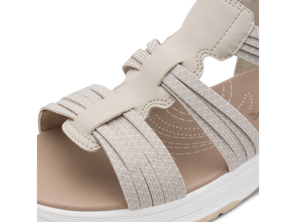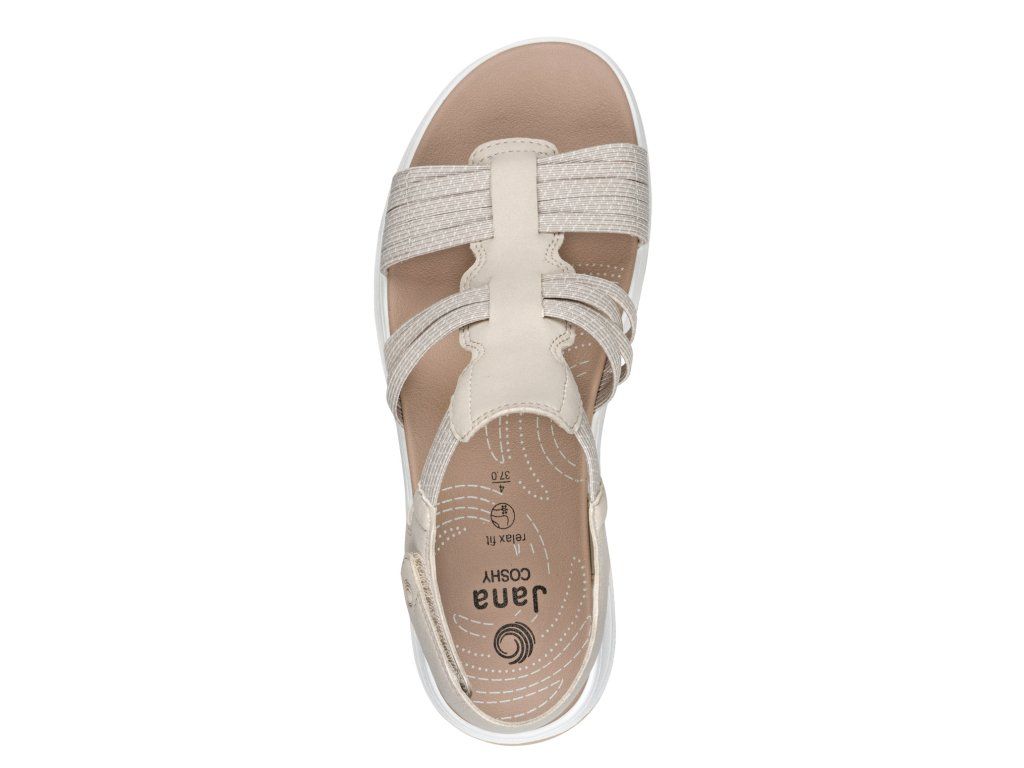 Sandály Jana mají svršek z pružných pásků přes nárt. Vklouznete do nich snadno po rozepnutí pásku za patu. Pro chodidla je připravena příjemná stélka, která bude tlumit každý došlap.