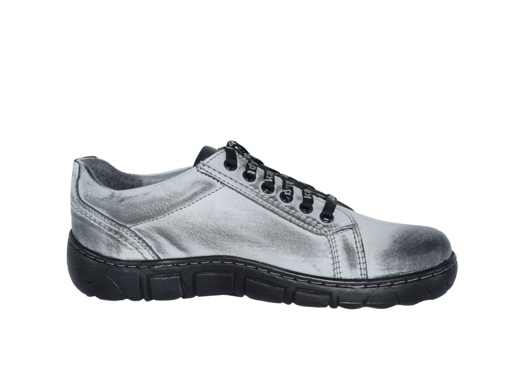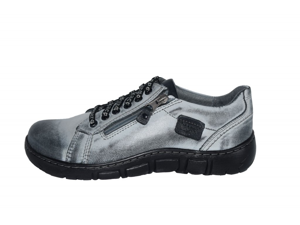 Dámská volnočasová obuv Kacper má svršek s originálním probarvením. Šněrování je doplněno o funkční šikmý zip, který také vytváří zajímavý design. Je pohodlná i díky měkké stélce a flexibilní podešvi, také oceníte celokožené provedení. Podešev je ozdobena prošitím.