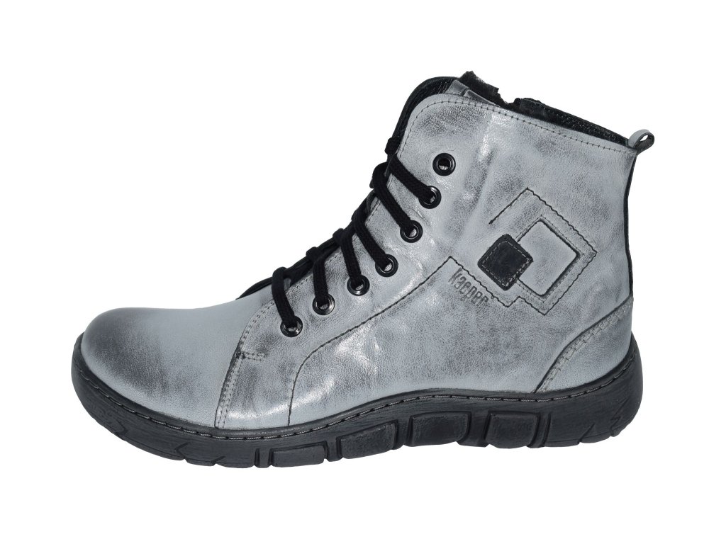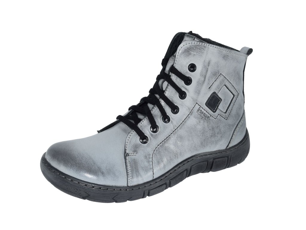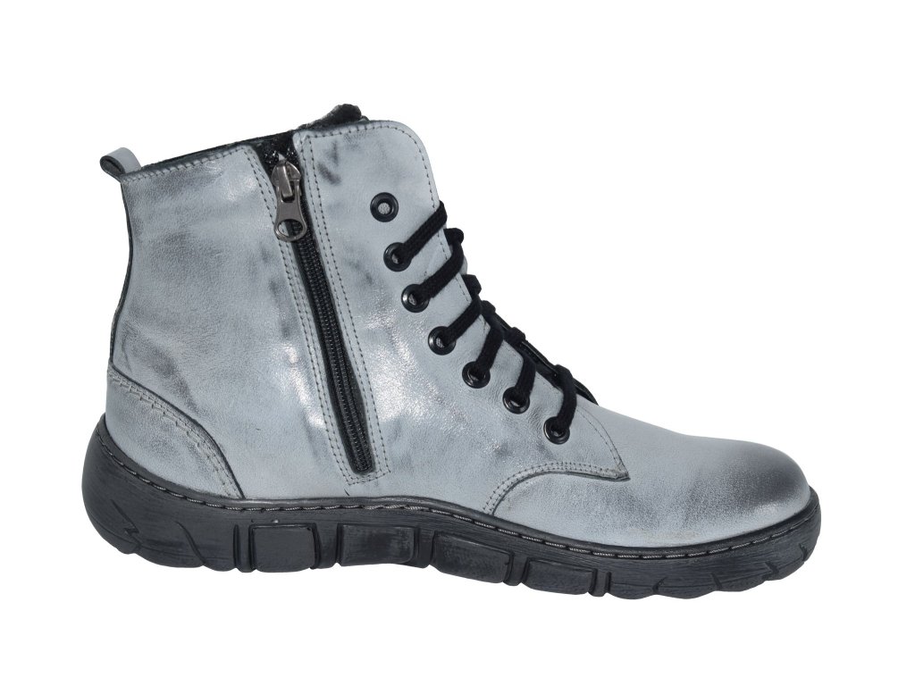 Kvalitní kožený svršek a silný kožíšek jsou dobrým předpokladem, že s touto obuví budete v zimě spokojeny. Šněrování je doplněno o dlouhý zip, takže je také snadno nazujete. Kontrastem vůči svršku je tmavá podešev a šněrování.