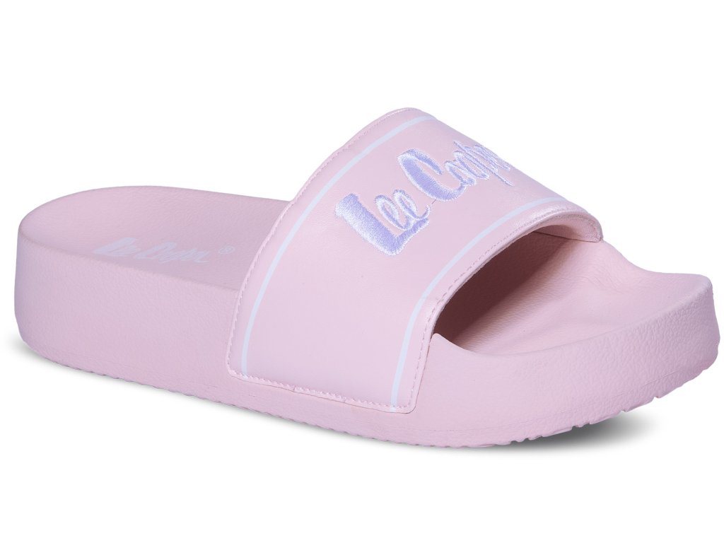 Dámské pantofle mají růžový svršek s výrazným logem Lee Cooper na nártu. Podešev má tvarovanou stélku, podšívka pásku přes nárt má měkkou výplň. Unosíte je doma, na zahradě i na letní dovolené.