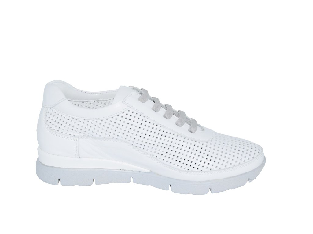 Dámské tenisky v bílém odstínu se vždy hodí a v létě budou dobře dýchat skrze perforovaný povrch. Jsou v komfortním celokoženém provedení, stélka je měkká, oceníte jejich nízkou váhu. Na nártu mají šněrování s pružnými tkaničkami.