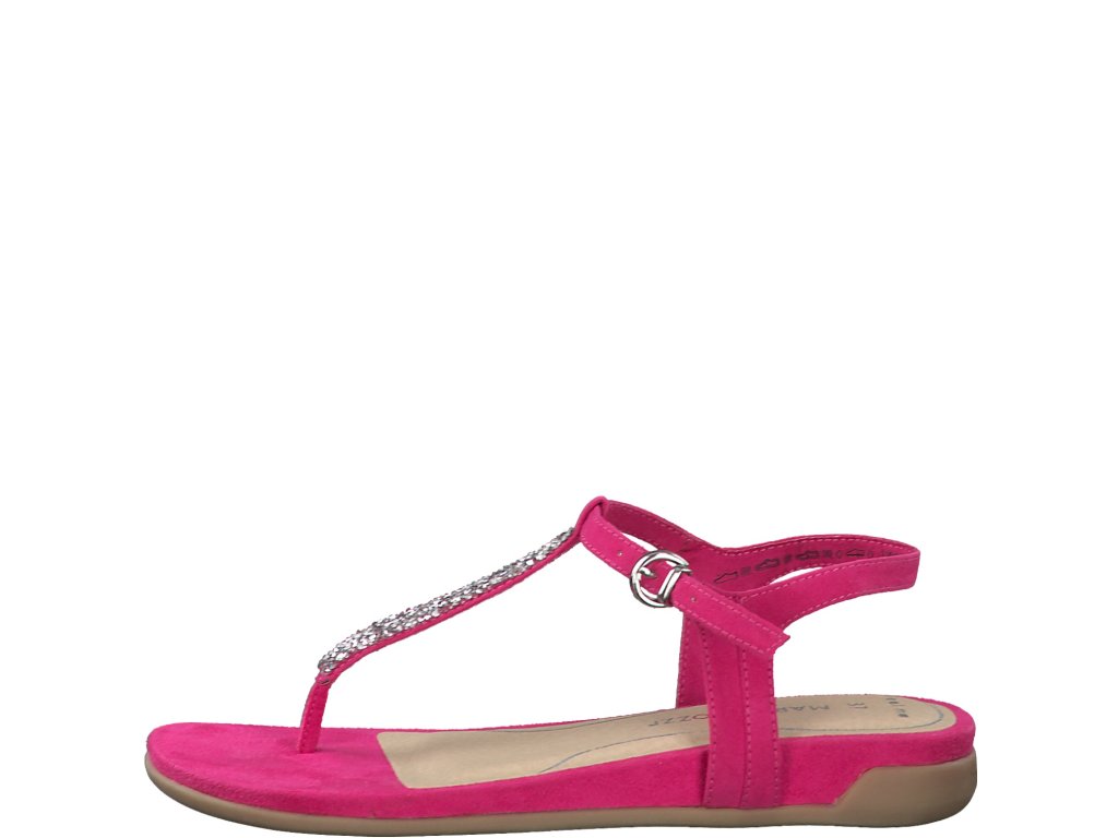 Originální sandály Marco Tozzi jistě upoutají pozornost díky jasně růžovému odstínu a střihu mezi prsty. Pásek na nártu je navíc ozdoben lesklými kamínky. Jsou také pohodlné, podešev je mírně klínovitá se stélkou Feel me, která se chodidlu dobře přizpůsobí.