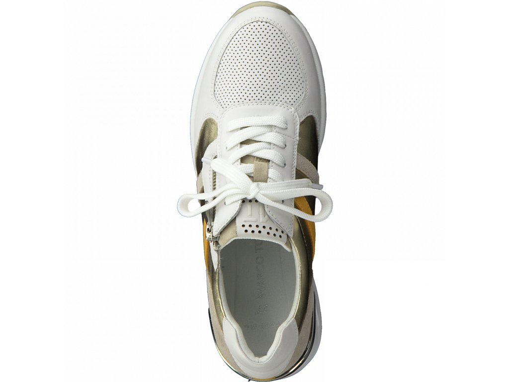 Tyto dámské tenisky jsou v módním provedení s metalickým svrškem po stranách, stříbrnou lištou pod patou a šikmým zipem. Výhodou je klínek, který krásně prodlouží postavu. Jsou i komfortní díky stélce Feel me, která se chodidlům přizpůsobí. Využijete je jak ke sportovnímu tak i volnočasovému outfitu.
