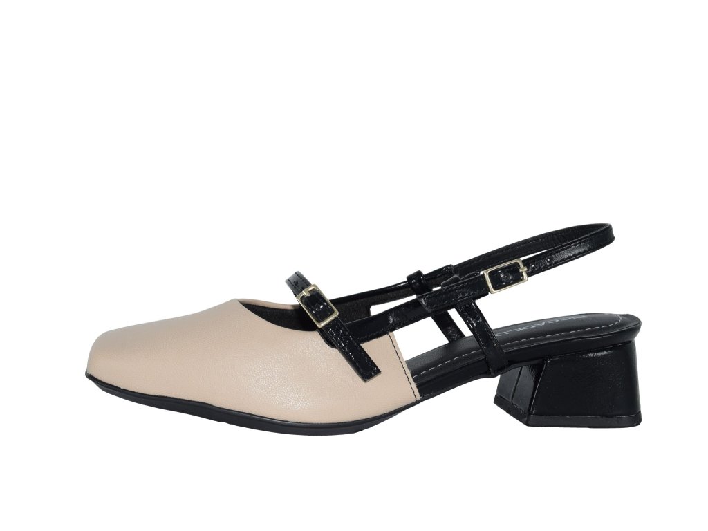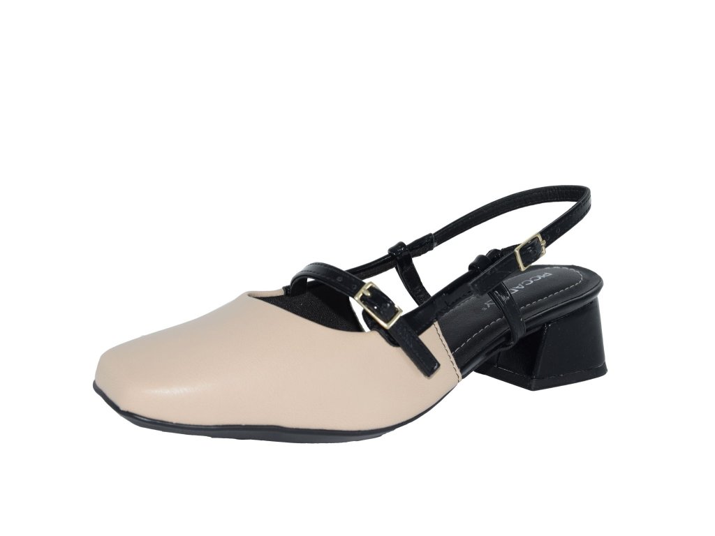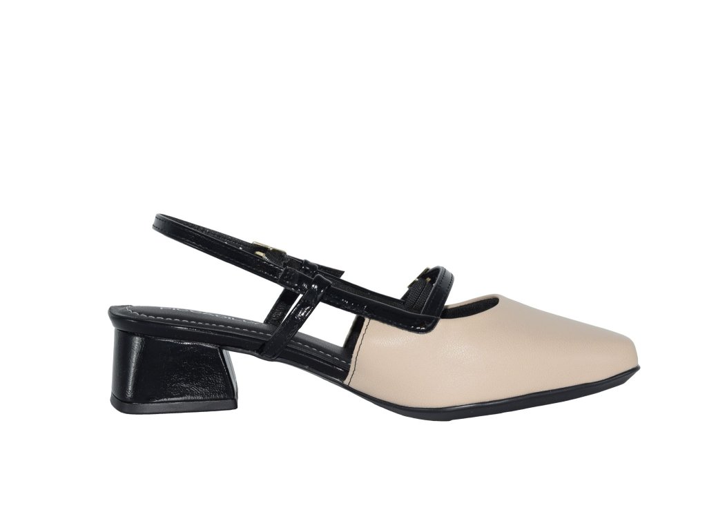Lodičky jsou designově zajímavé díky tenkým páskům, které jsou v kontrastu vůči béžovému svršku. Také tvarově propracovaný podpatek jim dodává šmrnc. Na chodidlo čeká polstrovaná stélka a podšívka.