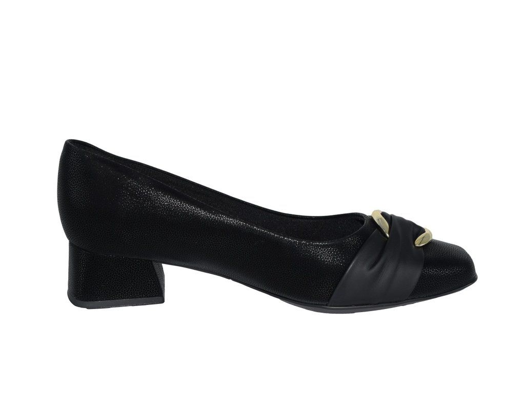Lodičky Piccadilly mají černý svršek s ozdobou na špici, hezký design dotváří hranatá špička a podpatek zajímavého tvaru. Uvnitř mají podšívku s příjemným polstrováním a stélku v měkkém provedení, takže chodidla se budou cítit pohodlně. Pokud nemáte ráda vysoké podpatky, tak jsou ideální volbou.