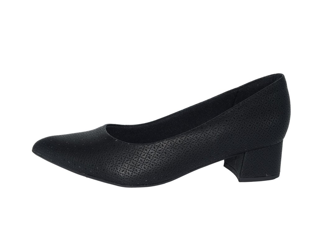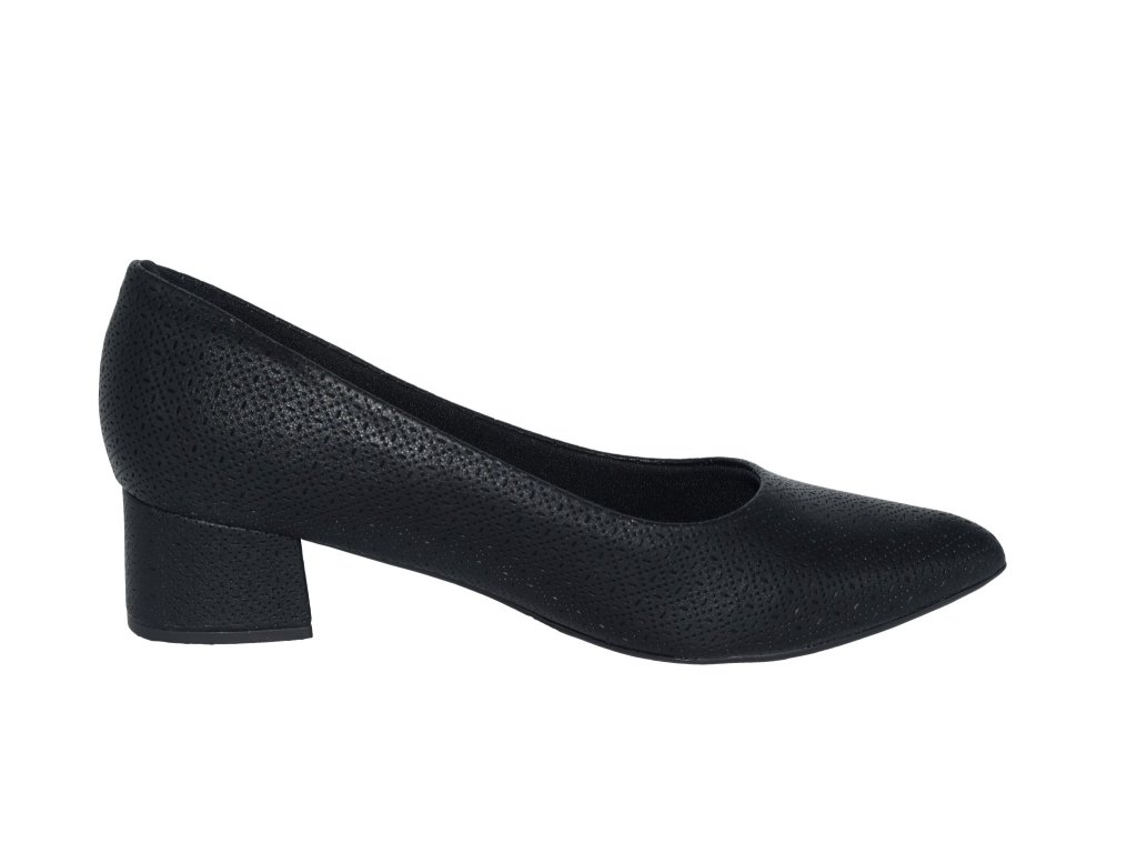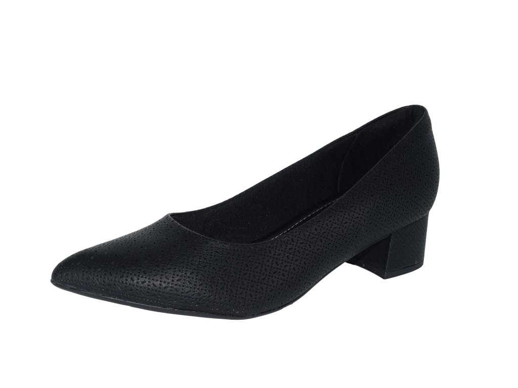 Lodičky Piccadilly mají černý svršek s jemným raženým vzorem a jsou na nižším širokém podpatku, takže pokud nepotřebujete prodloužit nohy, tak jsou pro vás ideální volbou. Jsou komfortní na nošení díky lehkosti a flexibilitě podešve, polstrované podšívce a stélce kde je vrstva měkké pěny. Díky nízkému podpatku poskytují stabilitu při chůzi.