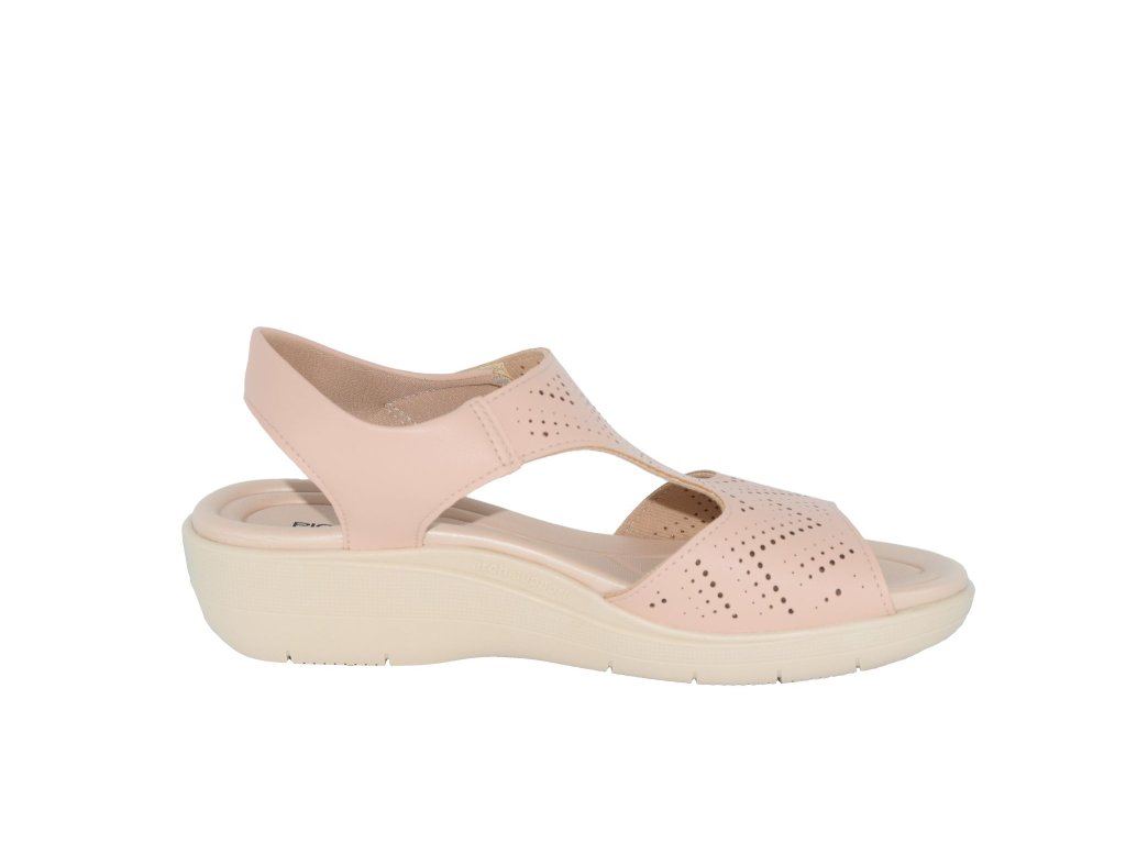 Sandály Piccadilly mají svršek s jemným perforováním. Podšívka kolem paty je s lehkým polstrováním, pásek přes nárt je na suchý zip. Podešev s mírným klínkem má stélku z komfortní PU pěny, která ztlumí každý krok.