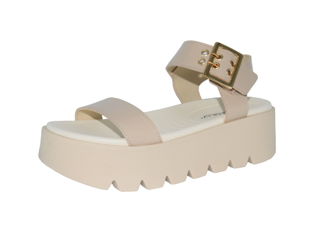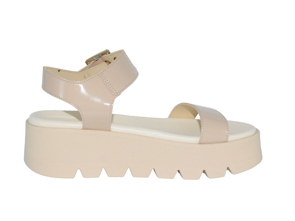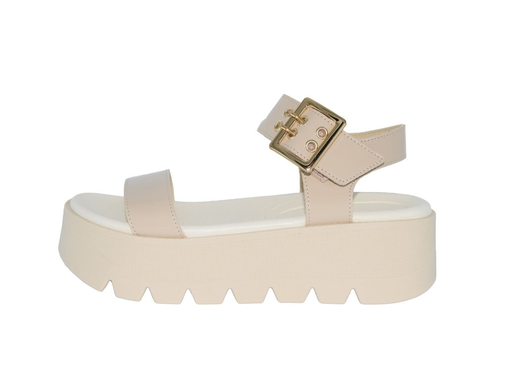 Dámské sandály mají masivní podešev se vzorem, stélka však je velice měkká, chodidlo se do ní pohodlně usadí. Nastavitelný pásek okolo kotníku se zlatou sponou nastavíte dle potřeby. Vyšší podešev zvýší vaši postavu.