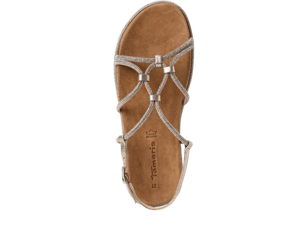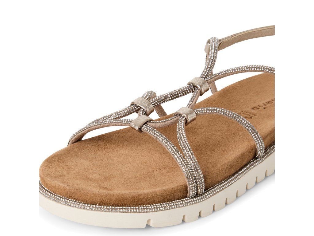 Dámské sandály Tamaris na nohou vyniknou díky páskům s kamínky. Stélka je příjemná na flexibilní podešvi a poskytne chodidlům vysoký komfort. Pásek za patu lze nastavit pomocí spony.
