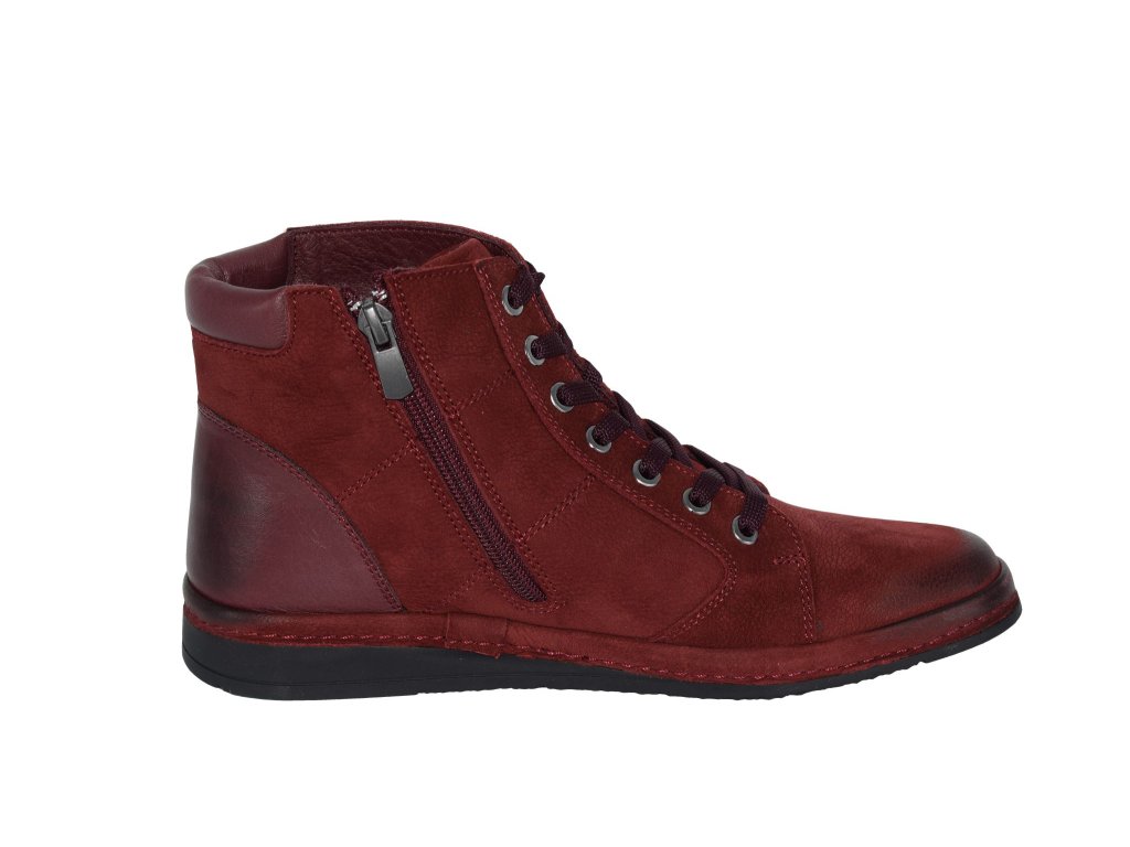 Tato kotníková obuv vyniká lehkostí a komfortem. Svršek je z kvalitní kůže s vyleštěnou špičkou a hladkým opatkem. Šněrování se silnými tkaničkami je doplněno o zip na vnitřní straně, který umožní snadné nazouvání. Vnitřek je lehce zateplený příjemným polstrováním. Podešev je tenká a velice flexibilní.