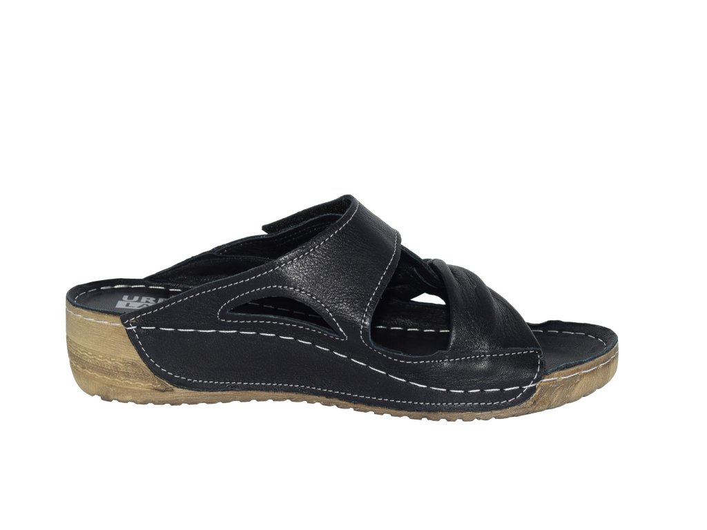 Pantofle URBAN LADIES jsou s pohodlným klínkem v imitaci dřeva. Jsou v celokoženém provedení, pásek přes nárt je na suchý zip a proto jej zapnete dle potřeby. Komfortní je měkká stélka, oceníte také velice kvalitní zpracování.