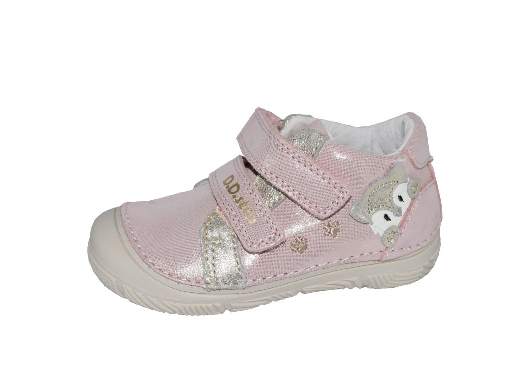 Dívčí obuv D.D.step má svršek v růžovém odstínu se třpytem a proto ji využijete i ke svátečním outfitům. Podešev je rovná s jemným vzorkem, zvýšená špice brání okopu svršku, špička dostatečně široká. Stélka je komfortní s paměťovou pěnou. Suché zipy umožní snadné nazouvání. Díky celokoženému provedení jsou pohodlné a nebrání zdravému vývoji chodidel.