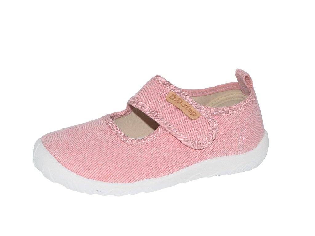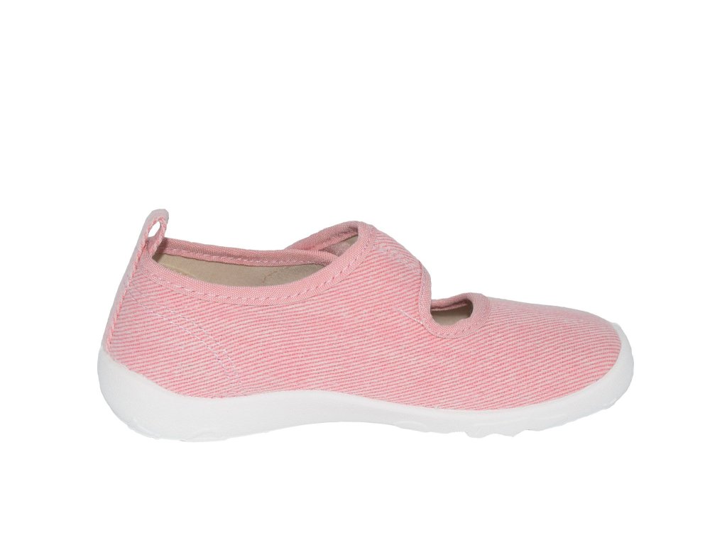 Dívčí plátěnky jsou v zajímavém růžovém odstínu a podešví typu barefoot. Stélka je v měkkém provedení, podešev velice flexibilní. Pásek přes nárt se suchým zipem usnadní nazouvání.