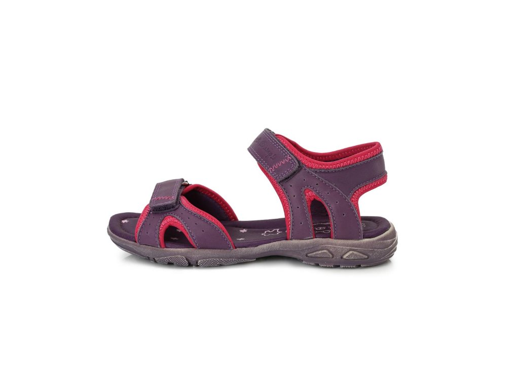 Dívčí kožené sandály ve fialové barvě mají okraje s výrazným lemováním. Pomocí pásku přes nárt a pásku kolem paty na suchý zip, lze sandály přizpůsobit noze a budou dobře držet na nohou. Samozřejmostí je kožená vyměkčená, anatomicky tvarovaná stélka a flexibilní podešev. Značka D.D.step je výrobcem zdravotně nezávadné obuvi s vysokým komfortem a atraktivním vzhledem.