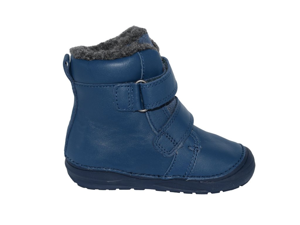 Chlapecká obuv je střihem ve vyšším provedení nad kotníky, kde vykukuje silný kožíšek, kterým je tato obuv zateplená na podšívce i stélce. Zapíná se na suché zipy a po jejich rozepnutí noha snadno vklouzne dovnitř. Špice je dostatečně široká, aby chodidlo mělo dostatek prostoru a mohlo se zdravě vyvíjet. Podešev je tenká, flexibilní, pod patou má soft shock pro tlumení nárazů při došlapu.