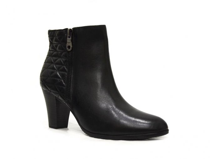 Dámská kotníková obuv Caprice je v černé barvě. Svršek obuvi je z hladké kůže, který je zdoben prošíváním v oblasti paty. Na vnitřní straně je zip pro lepší obouvání. Na vnější straně je taktéž zip, který je pouze designového charakteru. Podpatek je vybaven technologií AntiShock, díky které je tlumen došlap až o 50%. Chráníte tak Vaše klouby a záda.